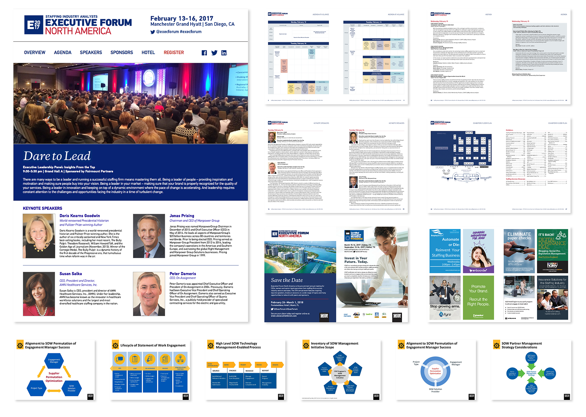 Lay out a 100+ page booklet for the Staffing Industry Analysts’ North American Executive Forum, along with presentation slides for a related Statement of Work course.
